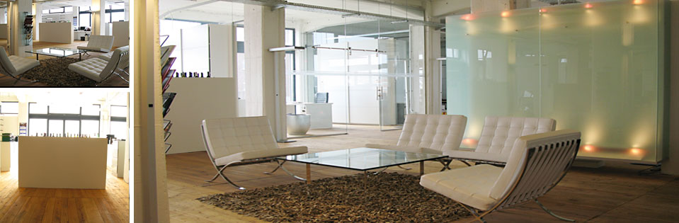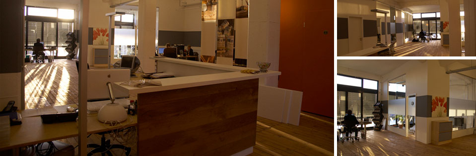 Klassikern als Möbel ergeben dieses helle, freundliche Büro. Sämtliche Möbel, Schränke, Tische und Sideboards sind von uns für die verschiedenen Teilbereiche entworfen und vom Tischler gebaut worden. Unser größter Erfolg: Trotz des offenen Bürokonzeptes herrscht eine angenehme Arbeitsatmosphäre, in der sich Geschäftsführung und Mitarbeiter wohl fühlen. |