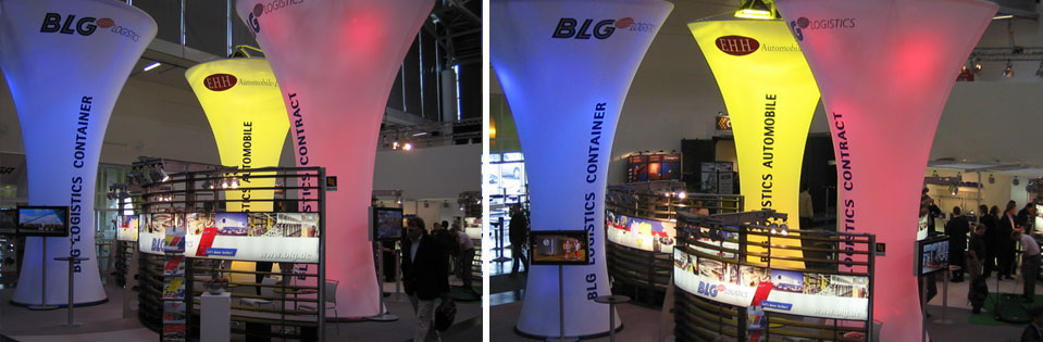 | Für einen Bremer Messebauer haben wir diesen Messestand entworfen. Konzept: Licht, Transparenz und Veranschaulichung der Teilbereiche des Kunden |
