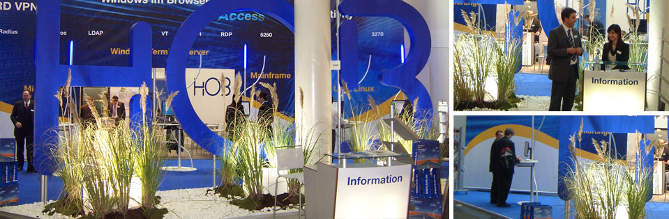 erklärt und getestet werden konnte. Der Auftritt sollte technisch orientiert und mit Ambiente in dem sonstigen „unruhigem“ CeBit Umfeld für eine entspannte Messeatmosphäre bei den Kunden sorgen. |