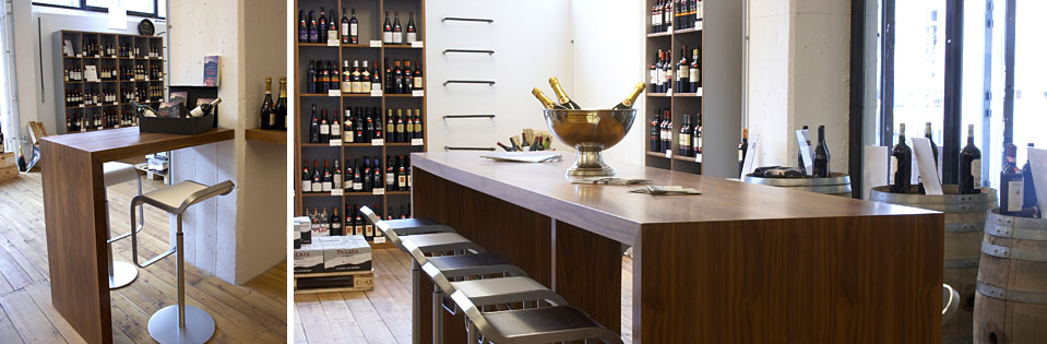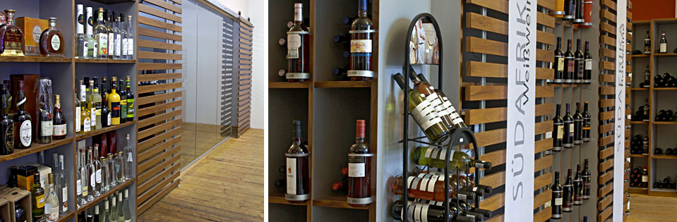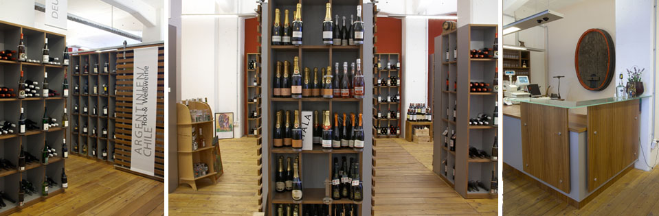 auch die gesamten Möbel und die „Verköstigungs“- Küche. Der Weinladen sollte als Lagerverkauf erkennbar bleiben und dennoch den hochwertigen Weinen entsprechen und sie präsentieren. |